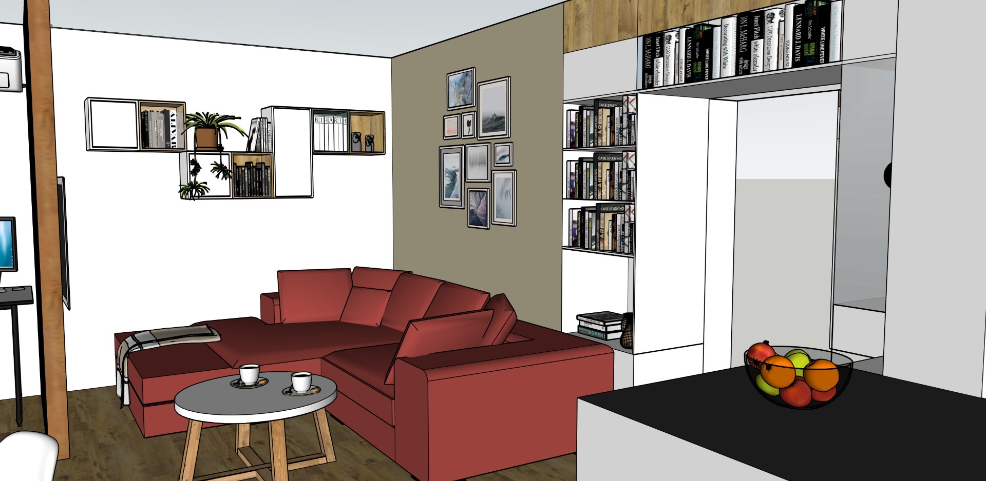 Na začátku jsme měli vlastní nápady, které jsme neustále měnily. 3D návrh od paní Moniky Domasové nám pomohl ujasnit si, která varianta je pro daný prostor nejvhodnější a jaké barevné ladění zvolit. Spolupráce s paní designérkou byla velice příjemná, rychlá a k naší spokojenosti. Sami bychom si byt tak hezky a prakticky nezařídili. Designérské služby paní Domasové mohu vřele doporučit.