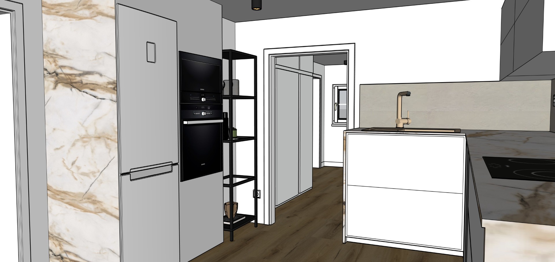 Na začátku jsme měli vlastní nápady, které jsme neustále měnily. 3D návrh od paní Moniky Domasové nám pomohl ujasnit si, která varianta je pro daný prostor nejvhodnější a jaké barevné ladění zvolit. Spolupráce s paní designérkou byla velice příjemná, rychlá a k naší spokojenosti. Sami bychom si byt tak hezky a prakticky nezařídili. Designérské služby paní Domasové mohu vřele doporučit.
